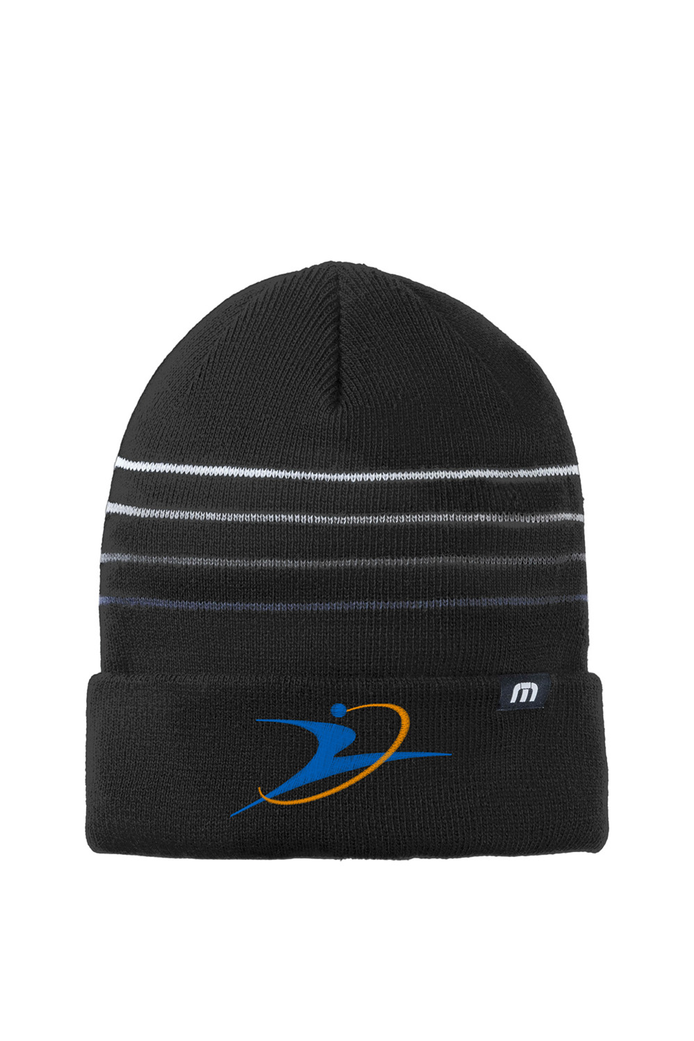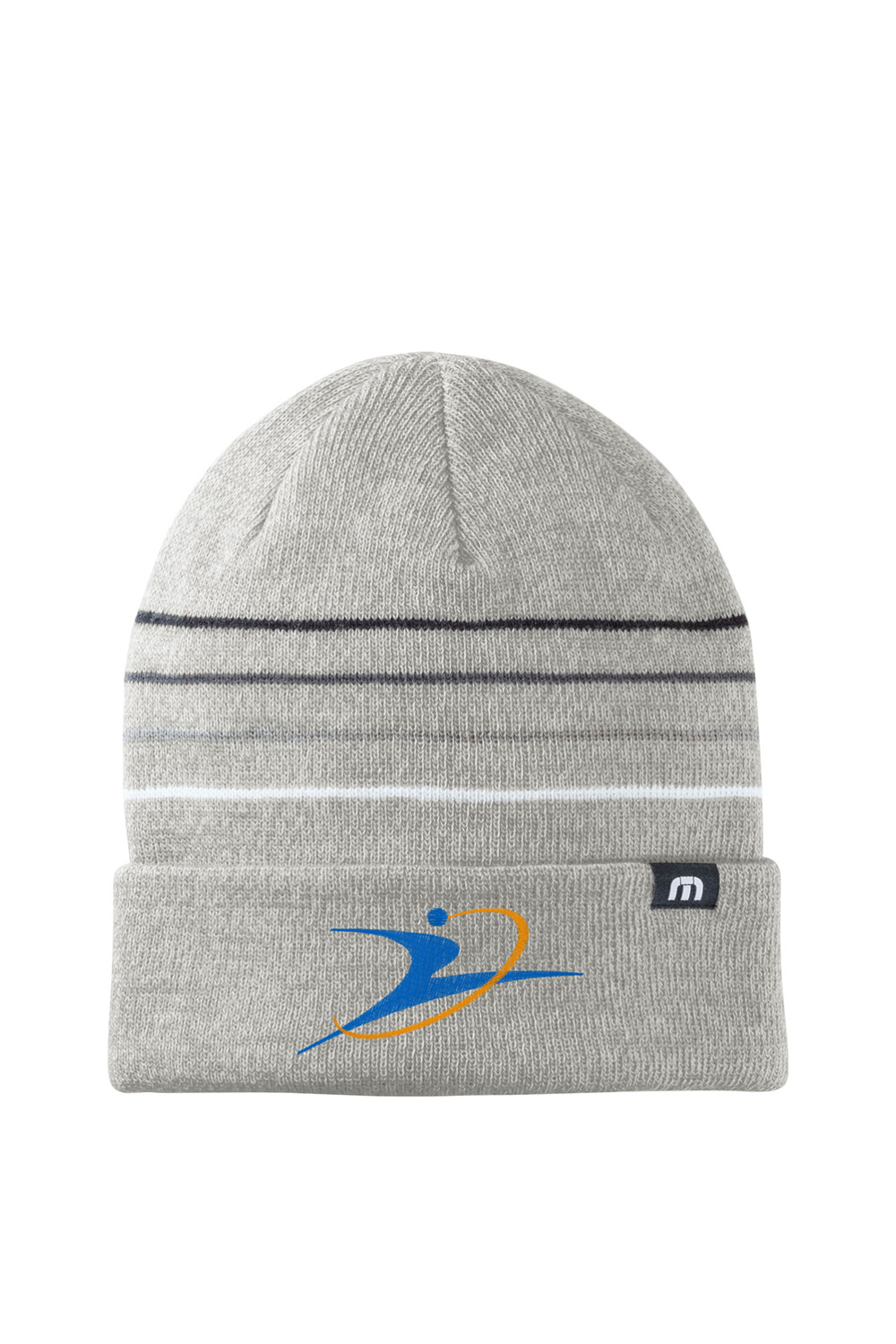 Stay ahead in style with the TravisMathew Striped Cuffed Beanie, crafted for elevated comfort and a modern look. Made from 100% acrylic, it features darts at the crown for a clean shape, an adjustable cuff height for a custom fit, and a tearaway label for added comfort. Finished with a TM woven label on the left cuff and a TIB logo embroidered on the front, this beanie brings together performance, personality, and premium branding in one sleek accessory.